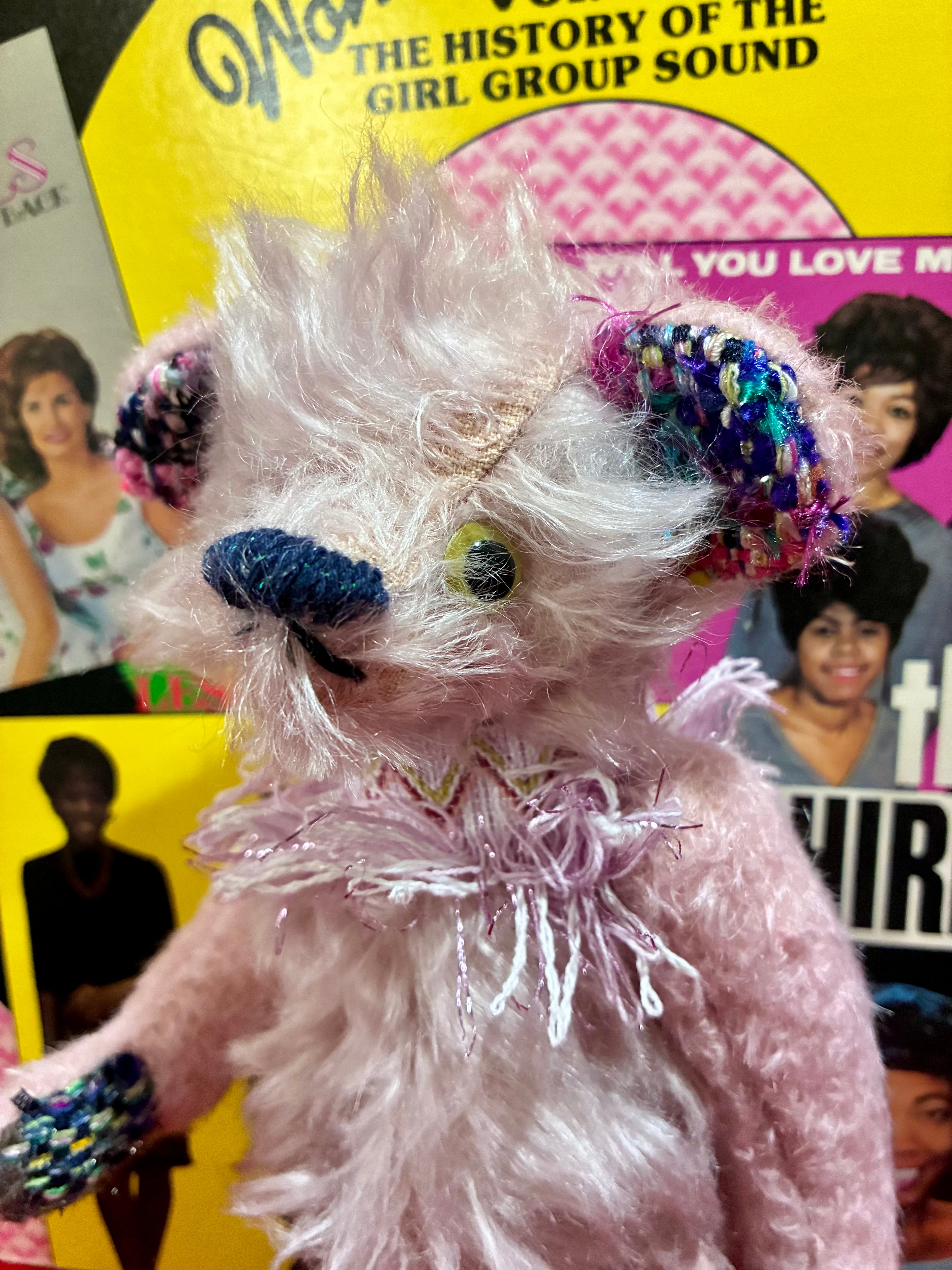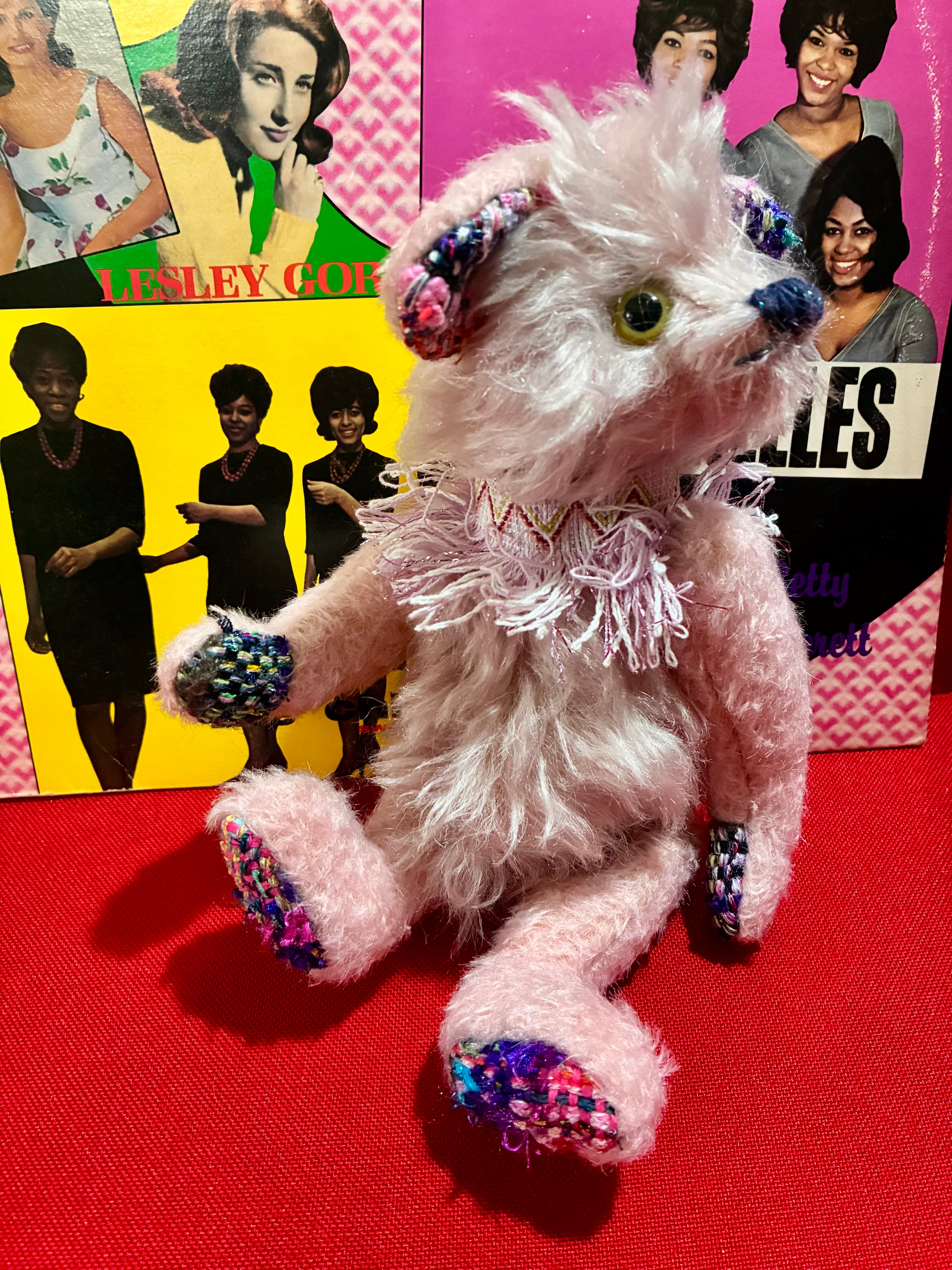 淡いピンクモヘアをベーずに鮮やかなハニカムツイードがアクセントになったCutenessな子です。
