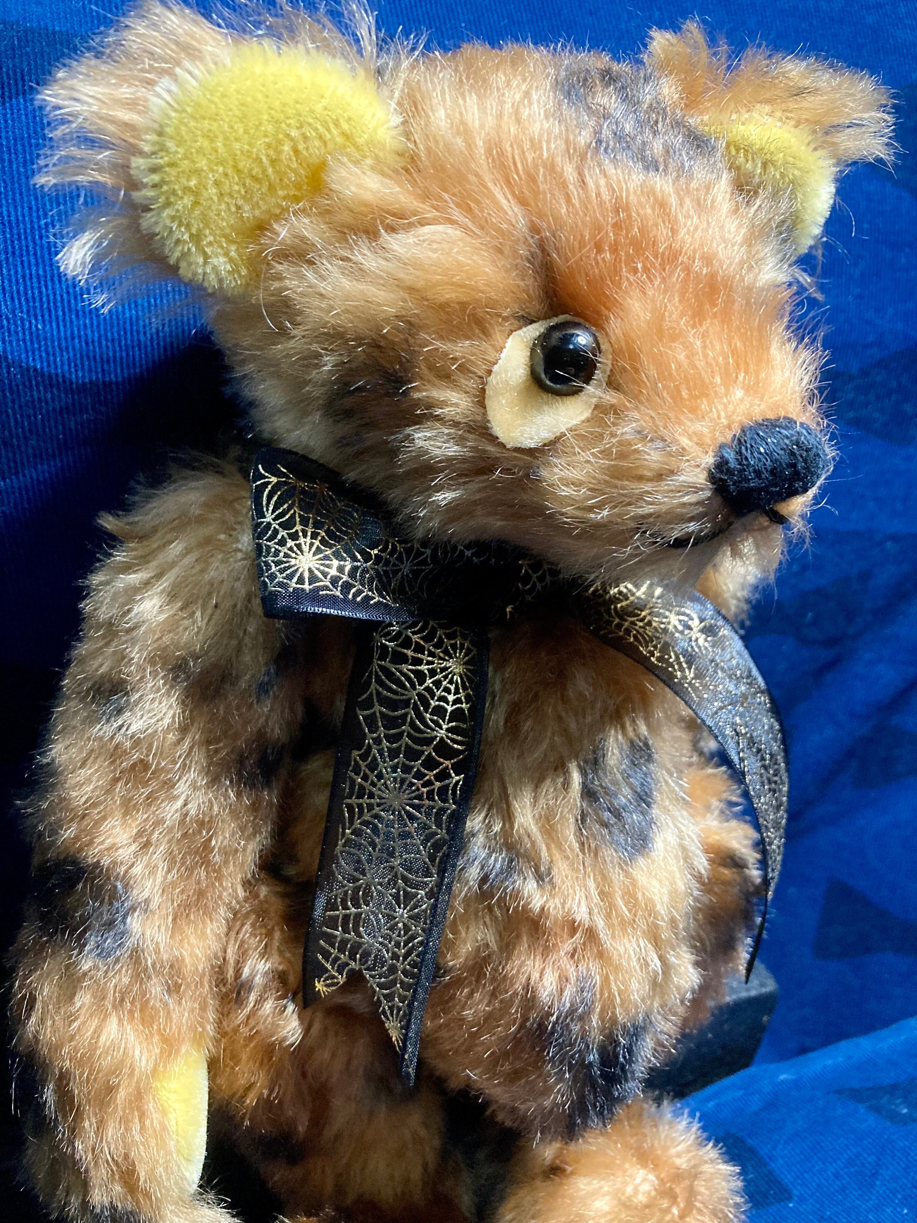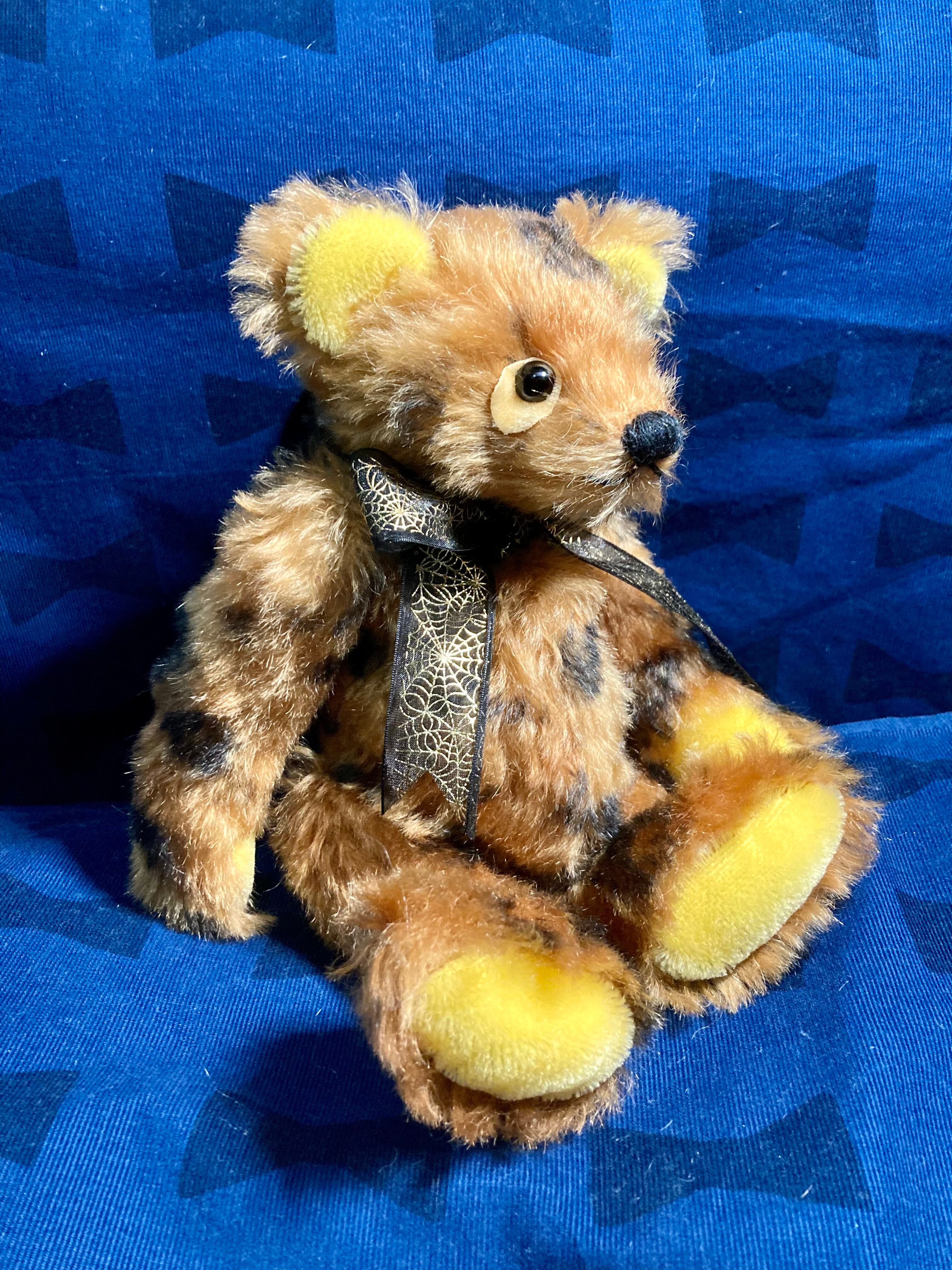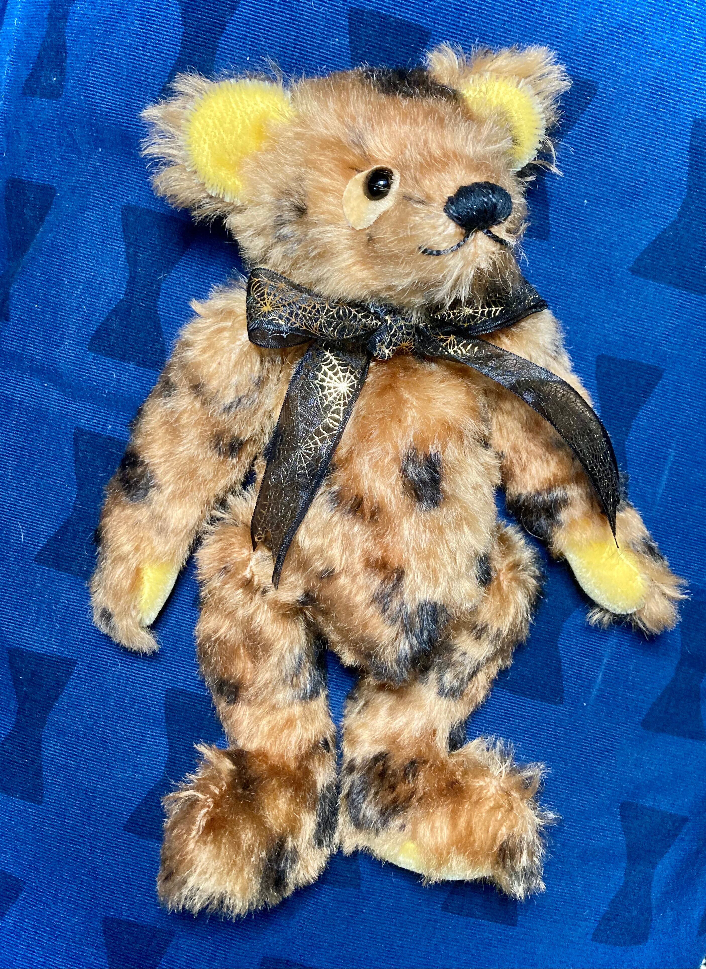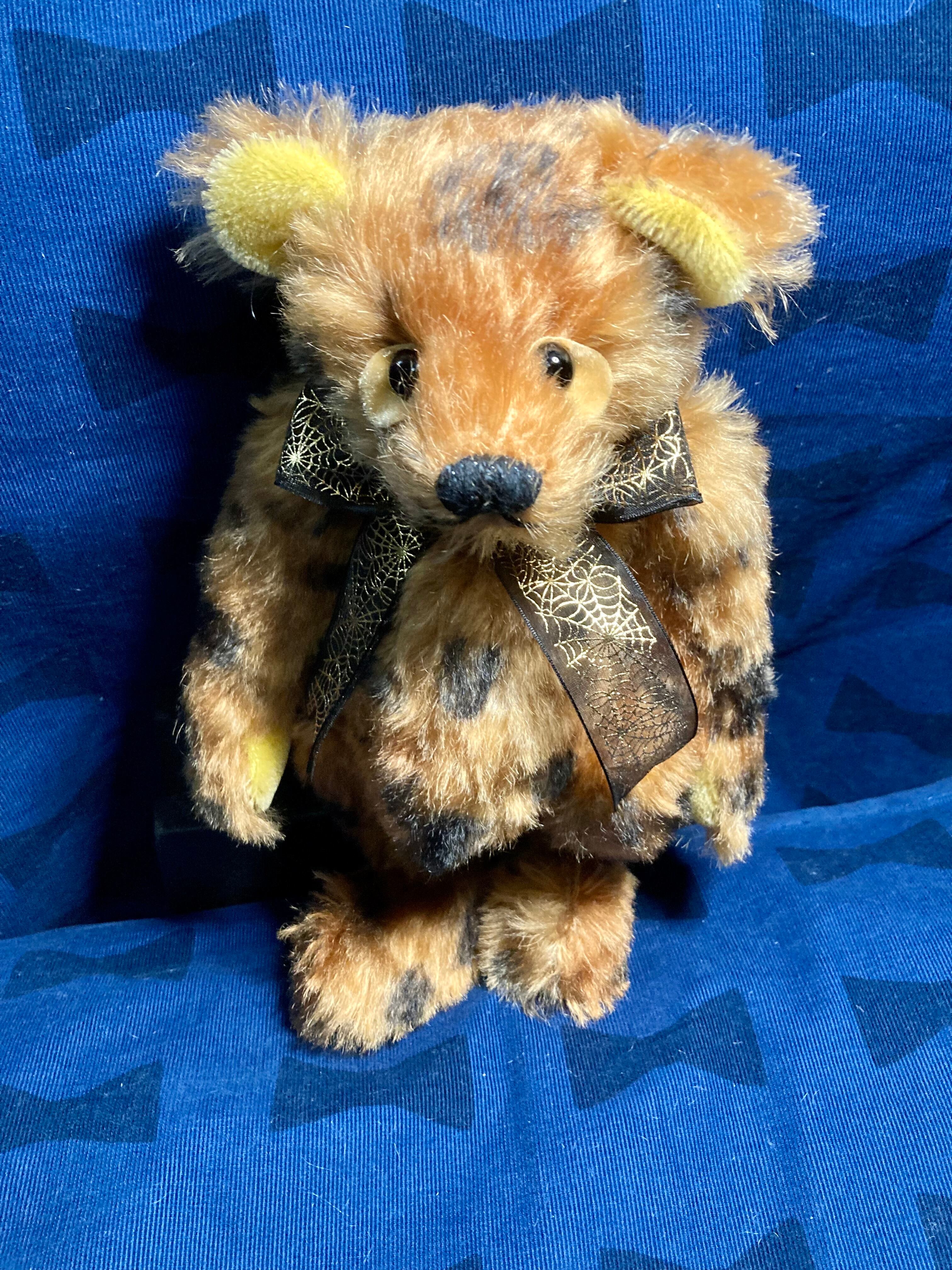 ヒョウ柄の大きめサイズ。 垂れ目で真っ黒な目がポイント! リボンを新調しました^ ^ 身長 約28cm 座高 約20cm
