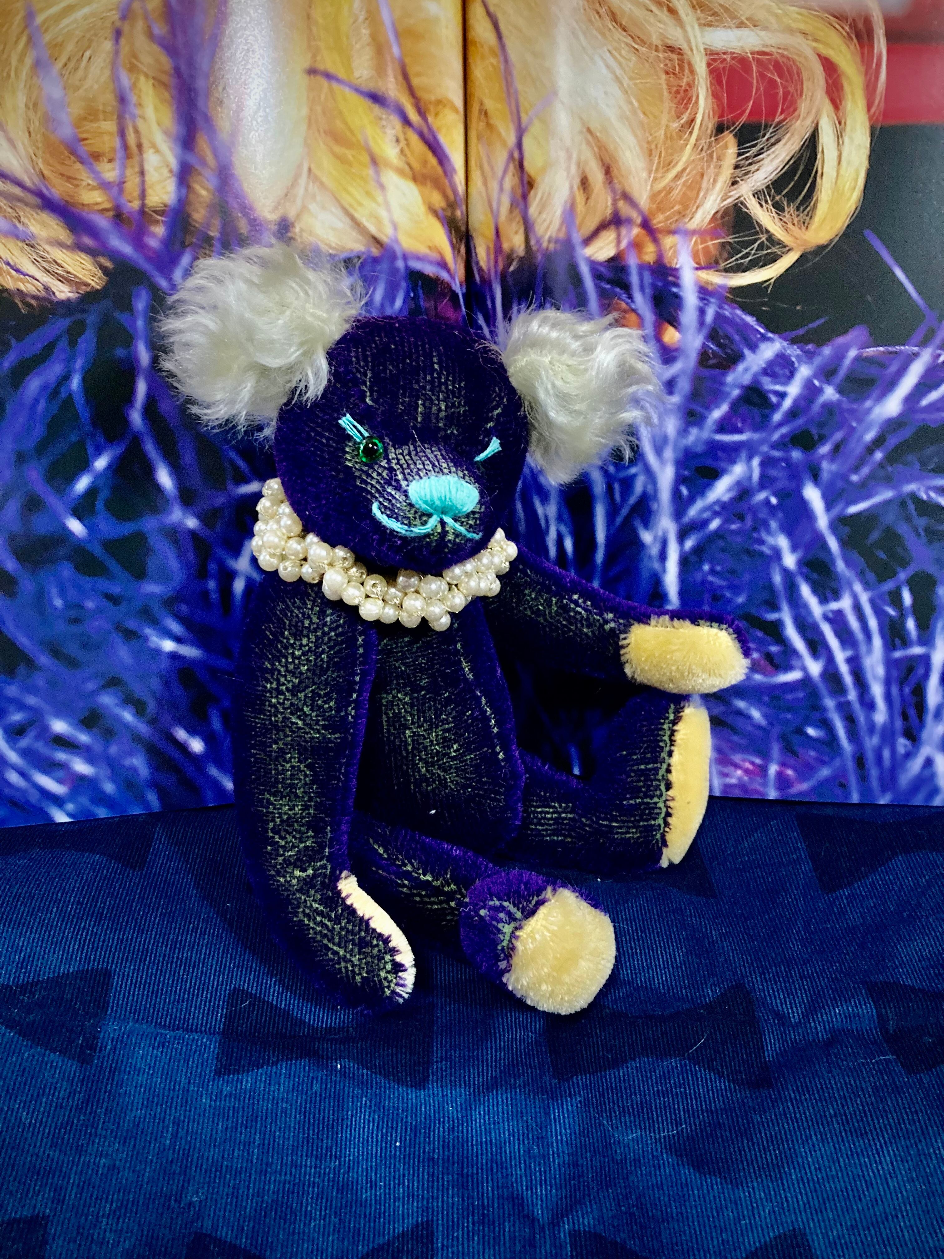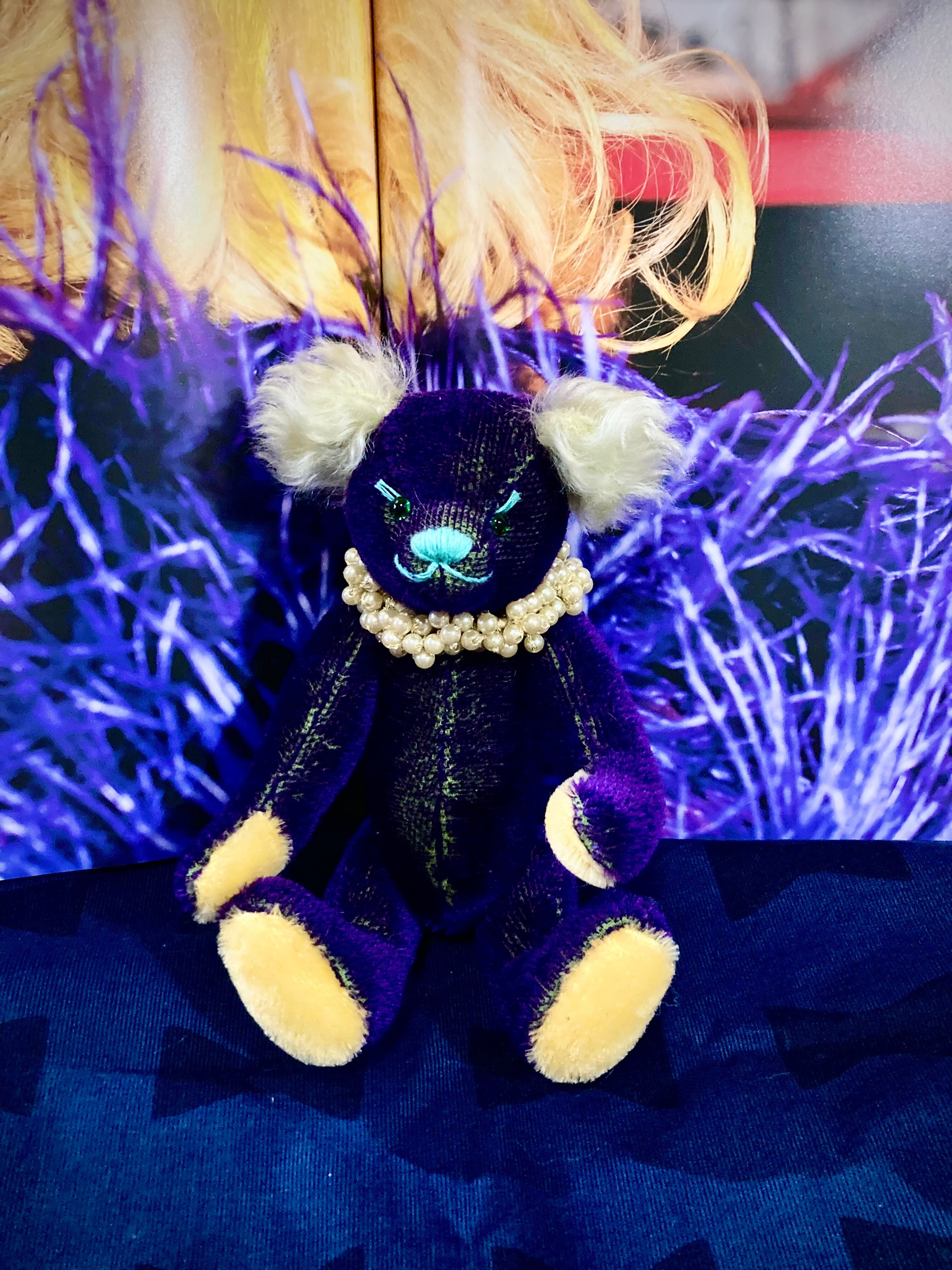 個人的に気に入っている地が緑、毛がパープルのモヘアを入手してボンバーヘッドシリーズとして作りました!
