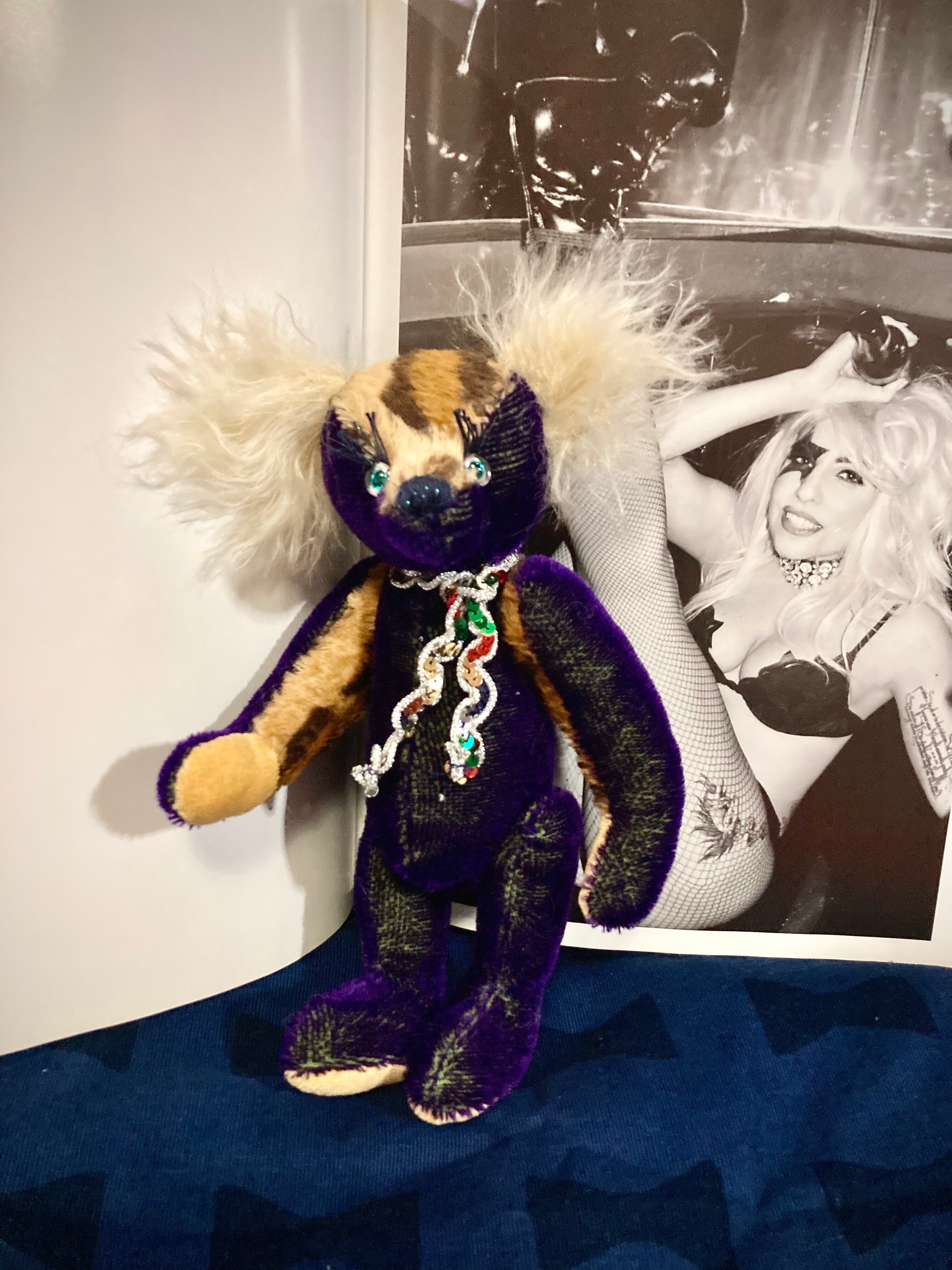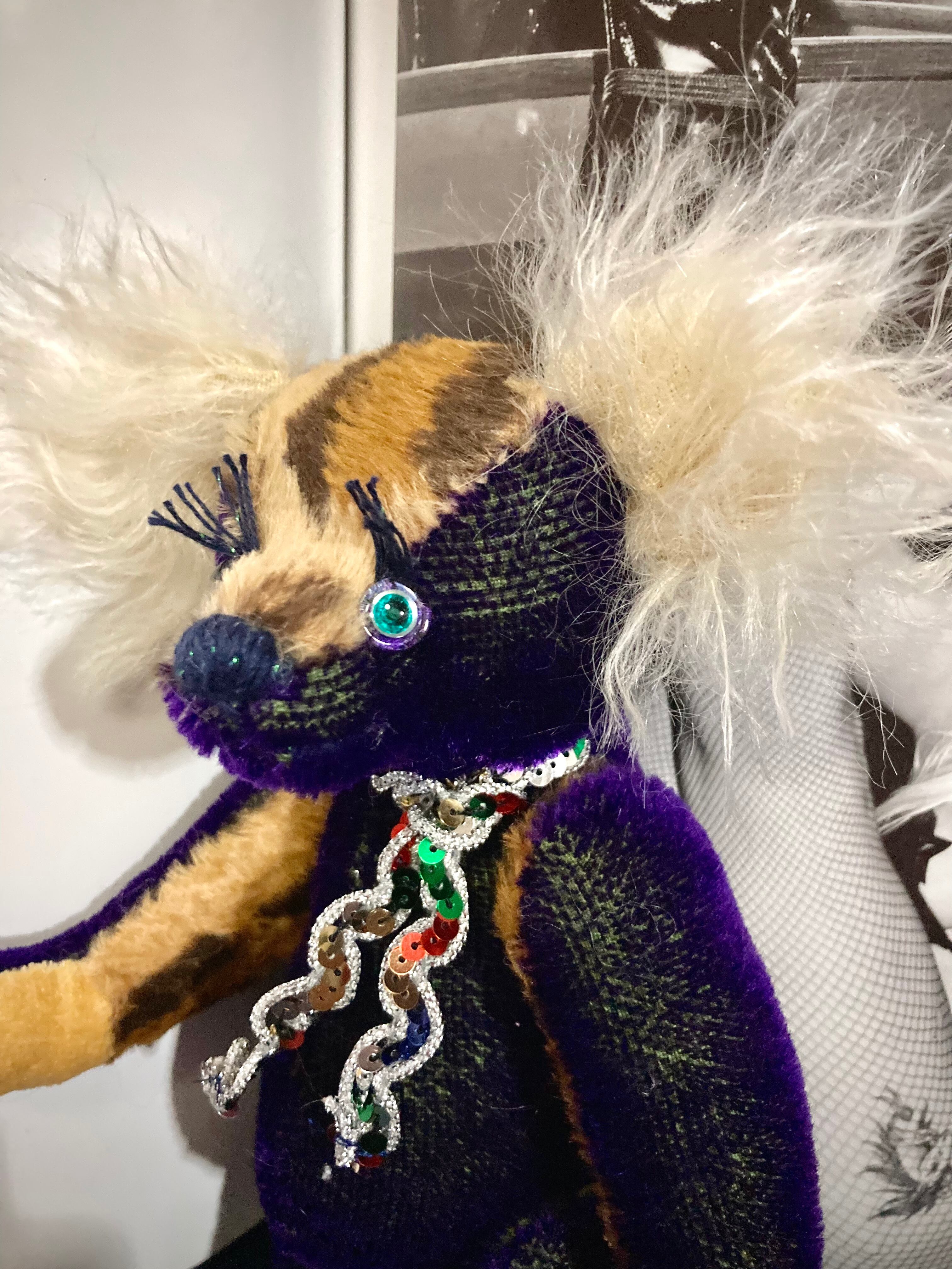 ヒョウ柄のモヘアをミックスしたSPバージョン‼︎キラキラグリーンのお目も素敵なお洒落テディベアです‼︎‼︎オススメ^ ^