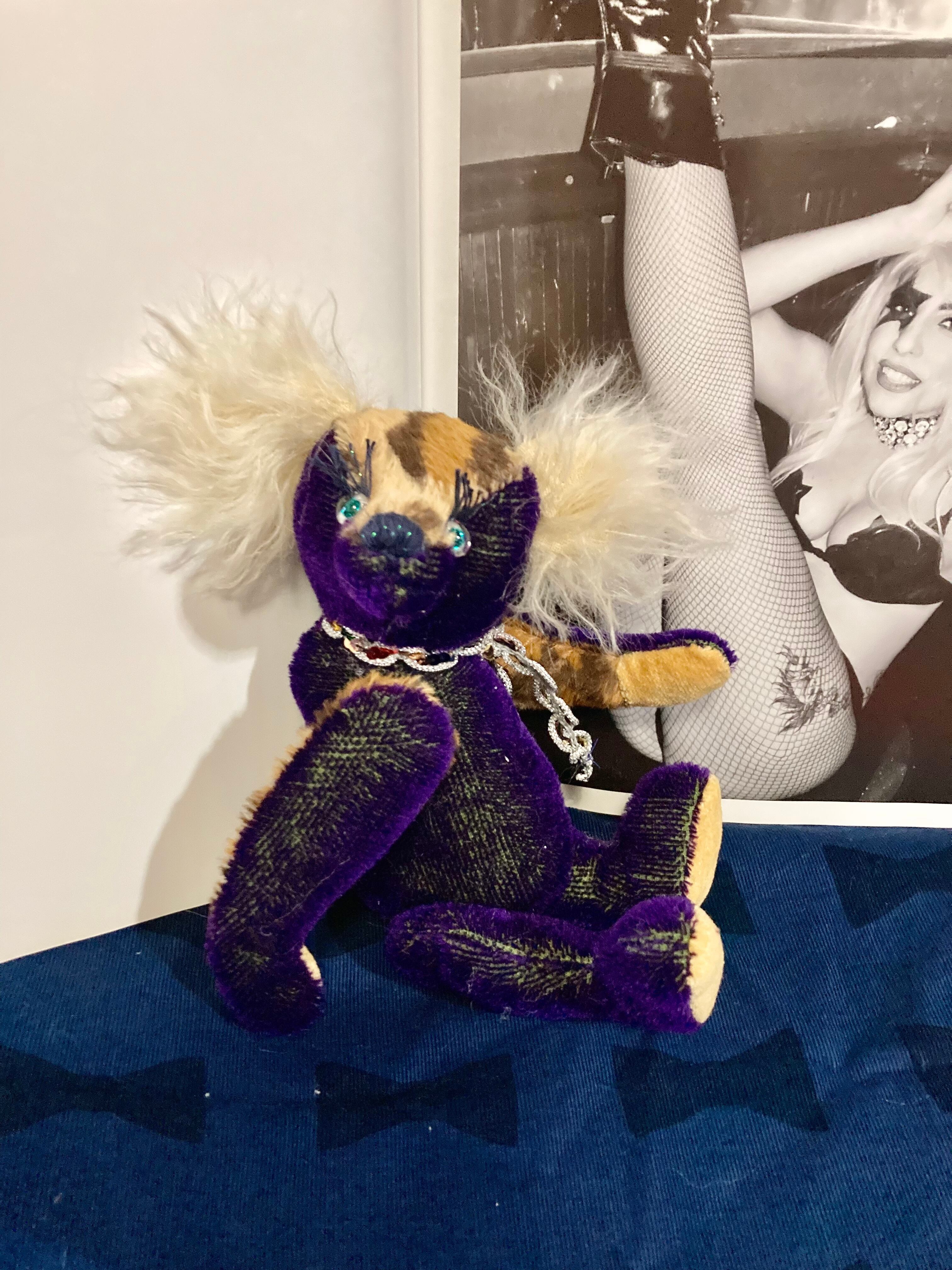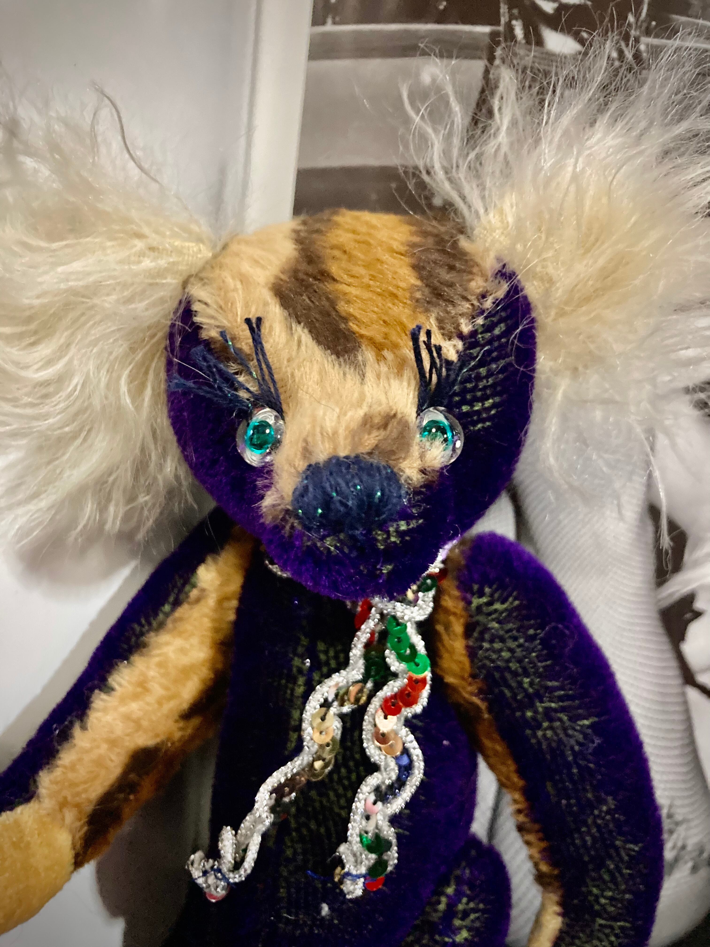 個人的に気に入っている地が緑、毛がパープルのモヘアを入手してボンバーヘッドシリーズとして作りました!