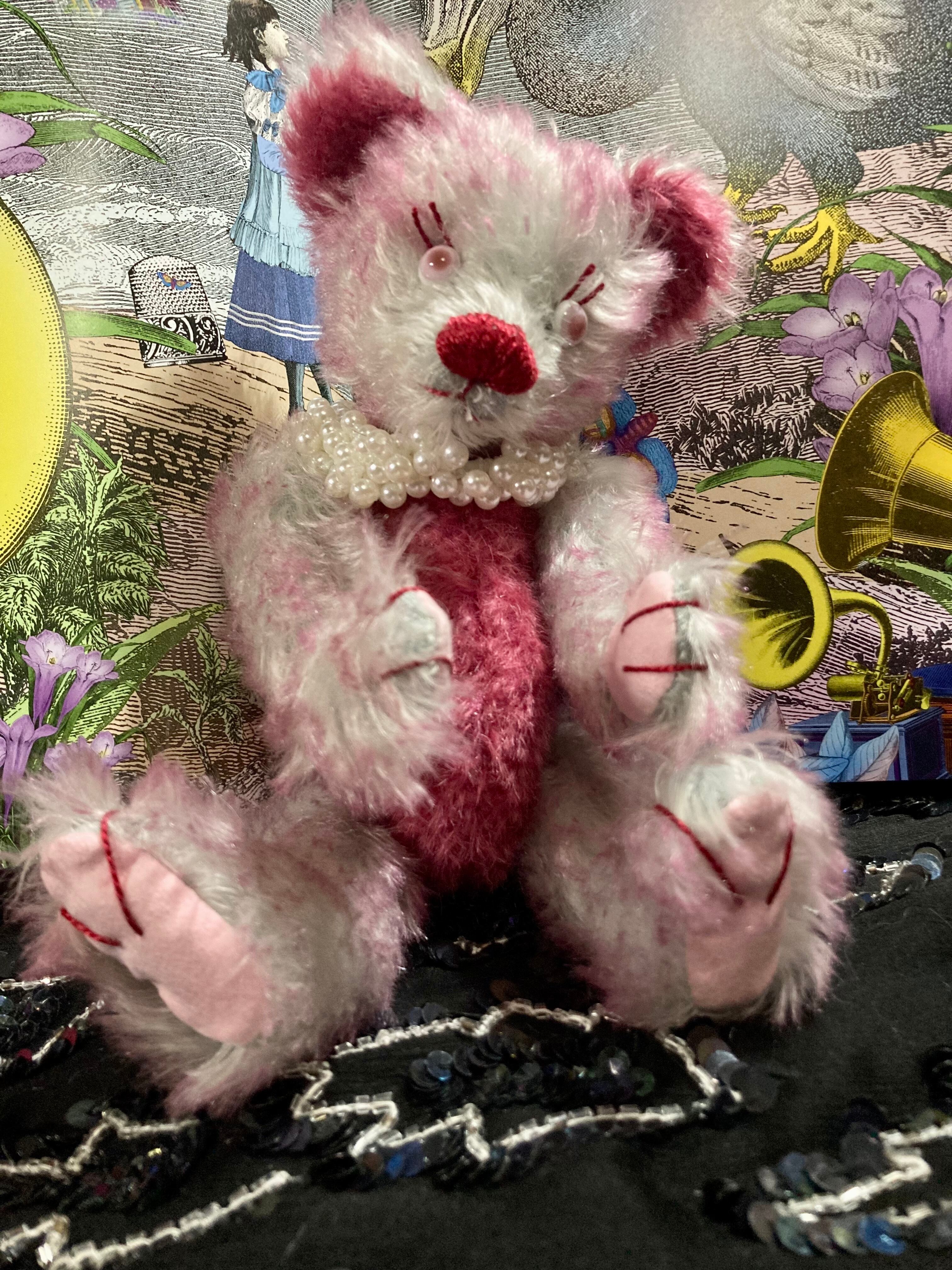 桜にも色々な種類があるように、濃いピンクのモヘアとの2トーンになっています!