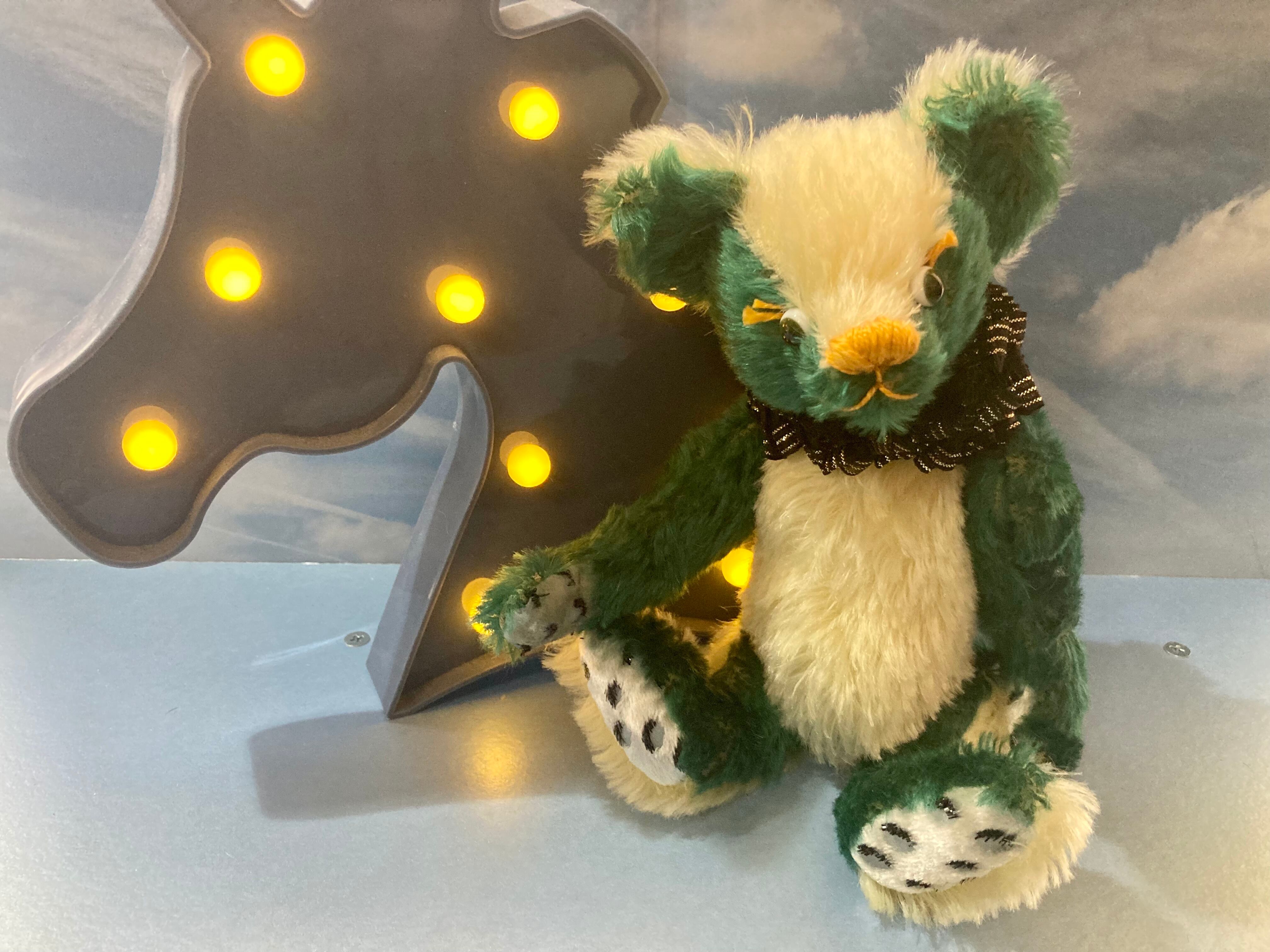 グリーンとイエローのツートンカラーベア。
