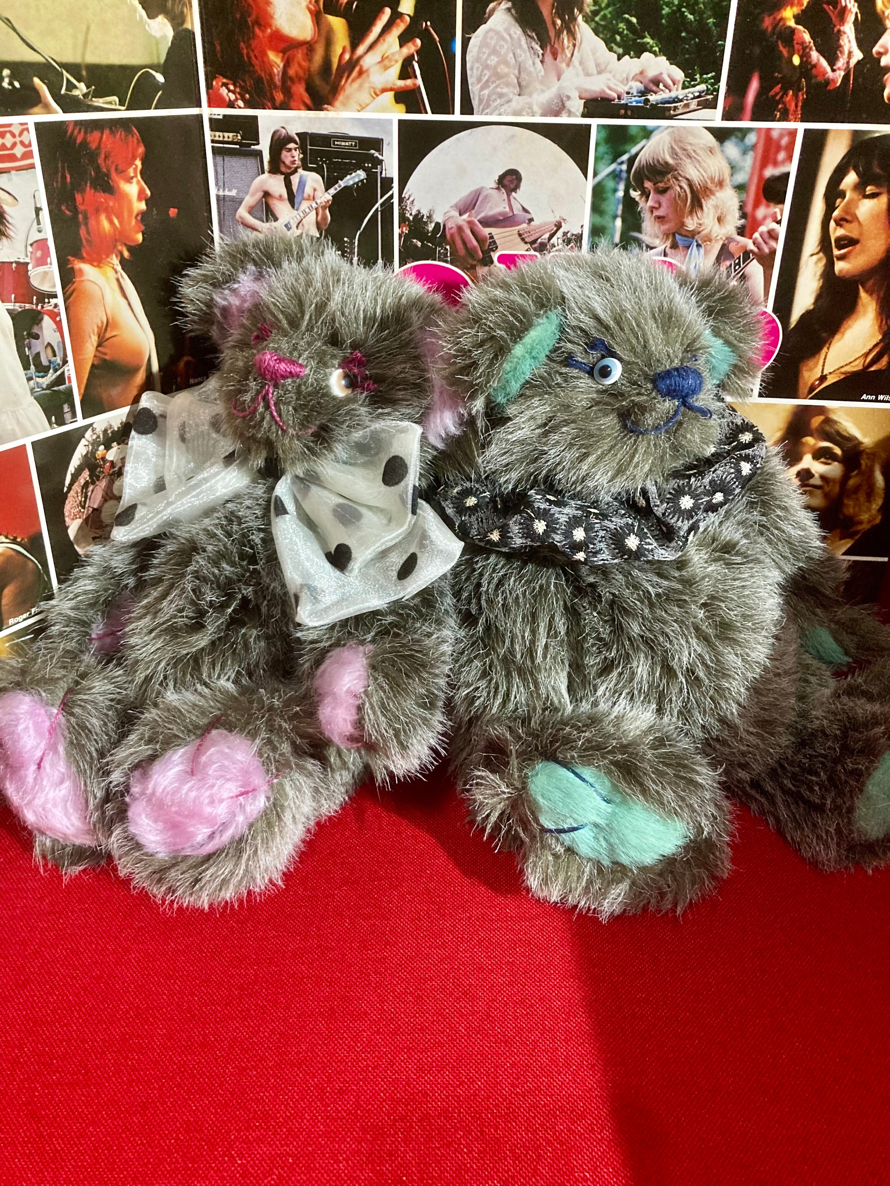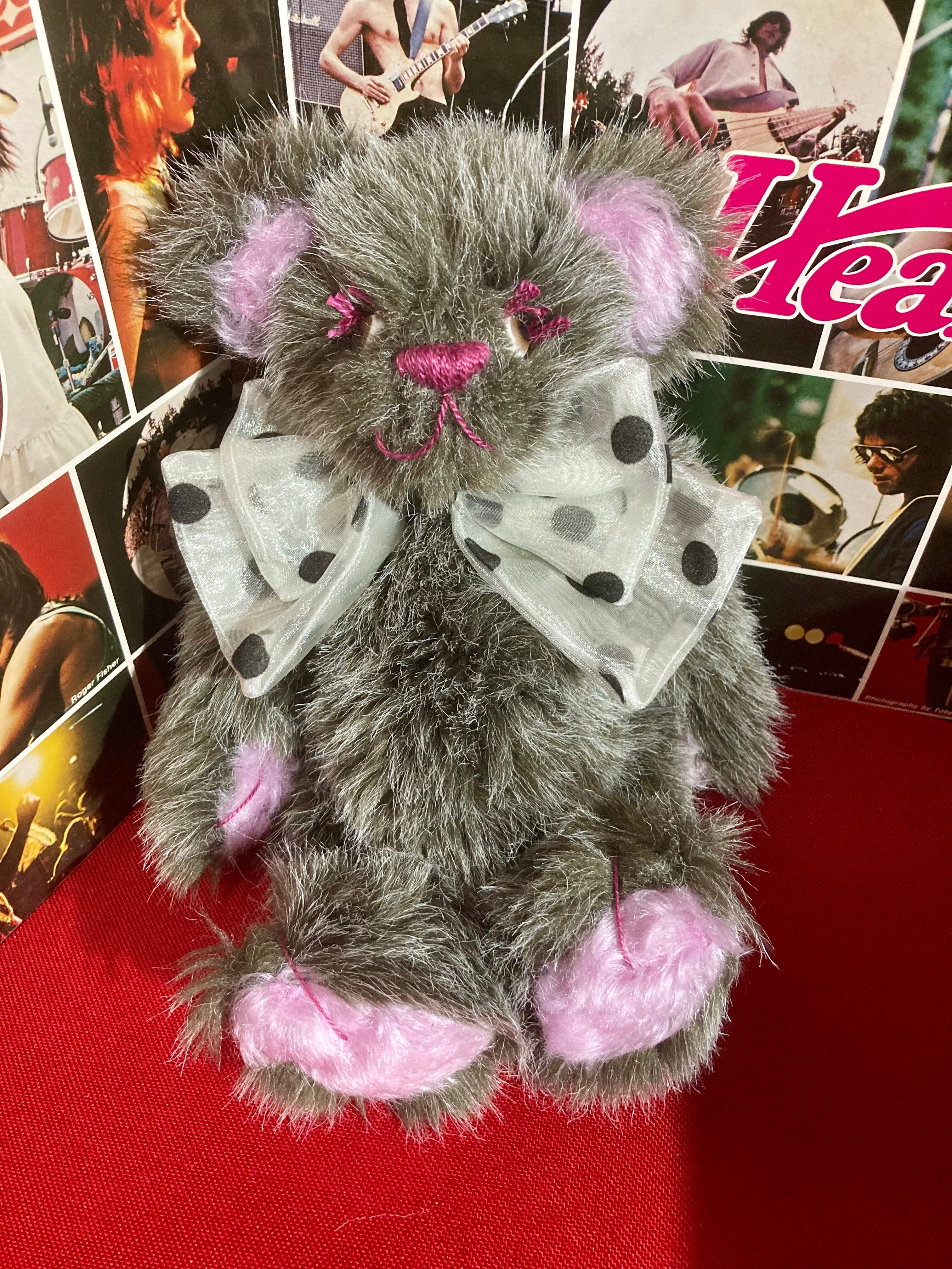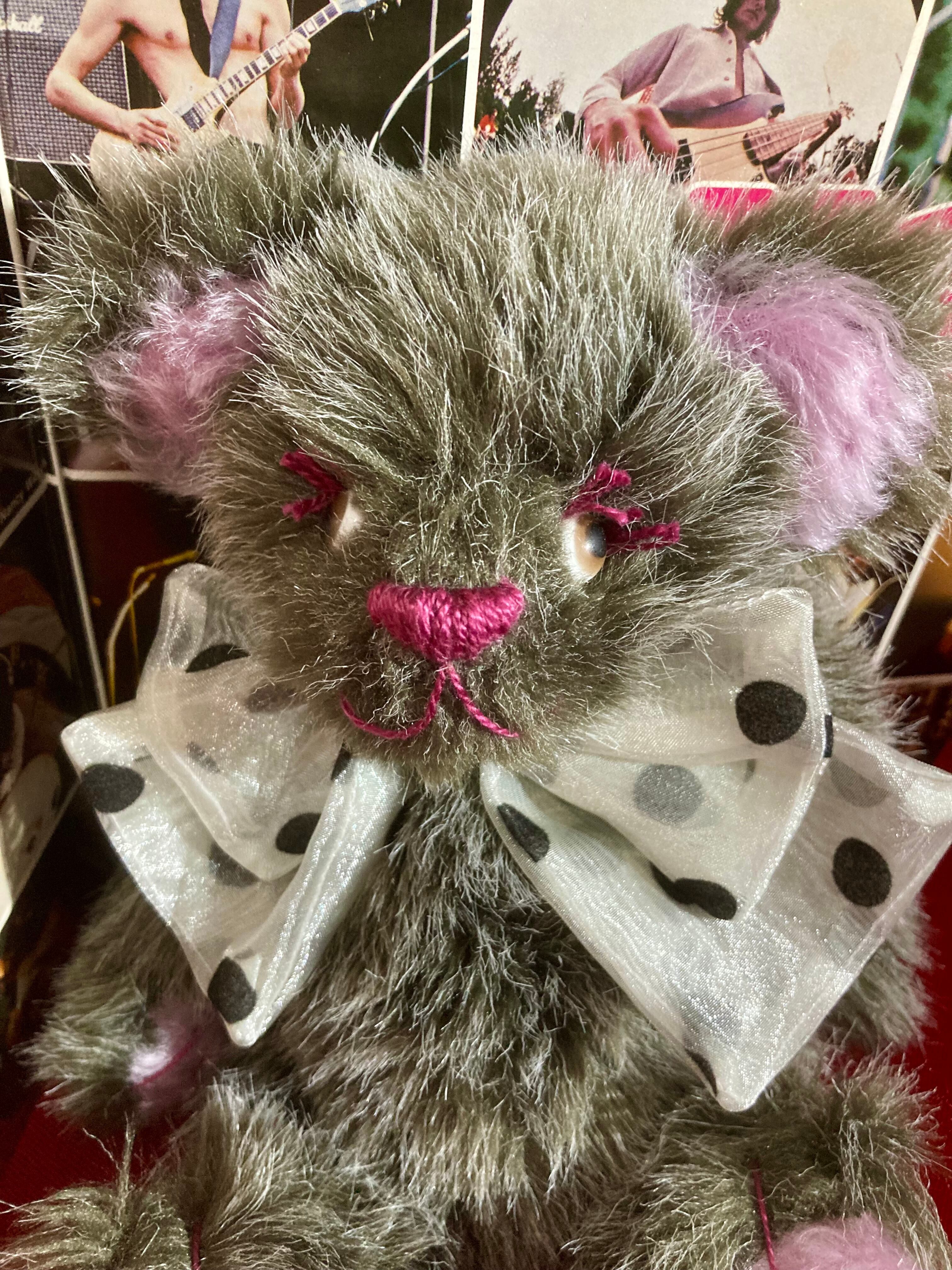 毛足の長いもふもふテディちゃんです。大きなドットリボンもポイント☆